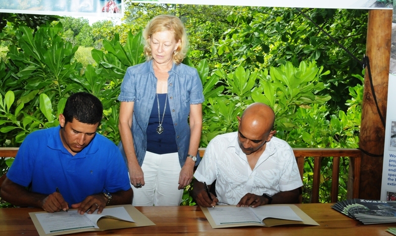 An agreement to that effect was signed yesterday between Nature Seychelles’ chief executive Nirmal Jivan Shah and the owner of the farm, Jean-Paul Geffroy. The signing ceremony took place at the Nature Seychelles’ Sanctuary at Roche Caiman in the presence of the Minister for Natural Resources Peter Sinon, special advisor to the minister Antoine-Marie Moustache, Nature Seychelles’ board members, among other guests.