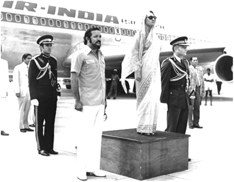 Nostalgy may not be what it used to be but please allow me to share 3 photographs from my collection – (i) depicting Prime Minister Indira Gandhi and myself standing to attention as the National Anthem of both Nations were being played (ii) depicting me escorting Prime Minister Gandhi to the VIP Lounge and (iii) showing me in a one-to-one discussion with the late Prime Minister at her office in New Delhi. Certainly these pictures taken in 1976 speak louder than words.