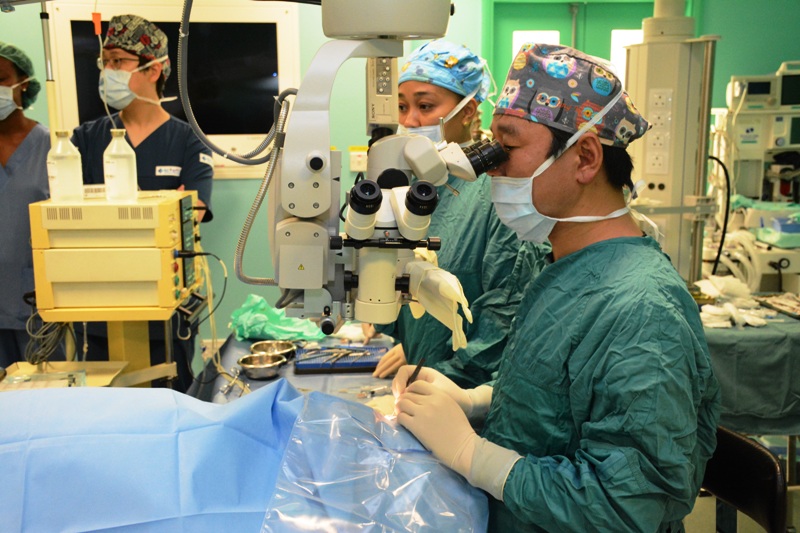 The eye camp surgical procedures are being jointly undertaken by Dr Jong Wook Kim, chief executive of BE World and Dr Roland Barbé, the acting Consultant-in-Charge of the Eye Clinic.